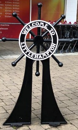 L'oiseau fait référence aux armes du Sussex et les croix sont les armes du Duc de Norfolk. Le bateau à un mât symbolise le port de Littlehampton.