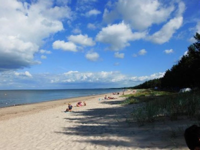La ville est située à 65 km à l'ouest de Riga sur les rives de la Slocene et le long de la mer Baltique, elle est à 1 650 km au nord-est de Chennevières (2 110 km par la route).
