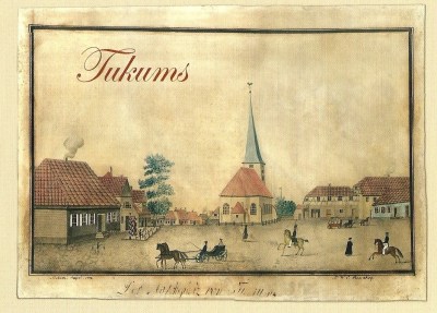 Le village de Tukums est mentionné pour la première fois dans des écrits de 1445. Le 27 novembre 1795 l'Impératrice russe Catherine II a signé un décret créant le district de Tukums.
